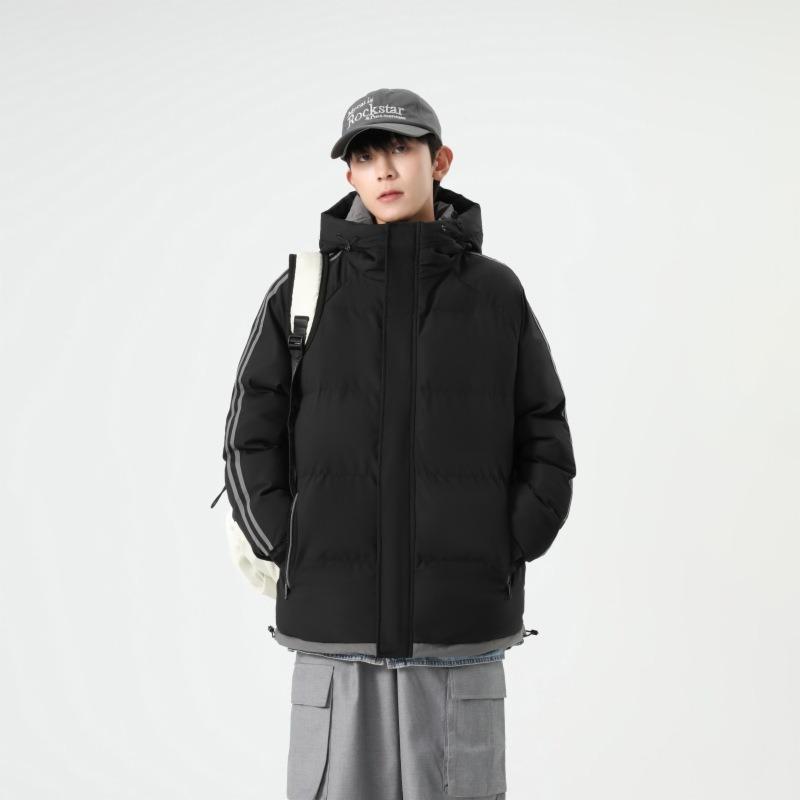 Padded men's winter large size hooded striped loose thickened padded jacket thermal casual padded jacket