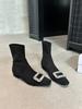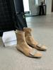 2025 strass fyrkantig spänne mocka små korta stövlar för damer höst och vinter nya platta klackade stövlar, sammet mångsidiga fyrkantig tå korta stövlar