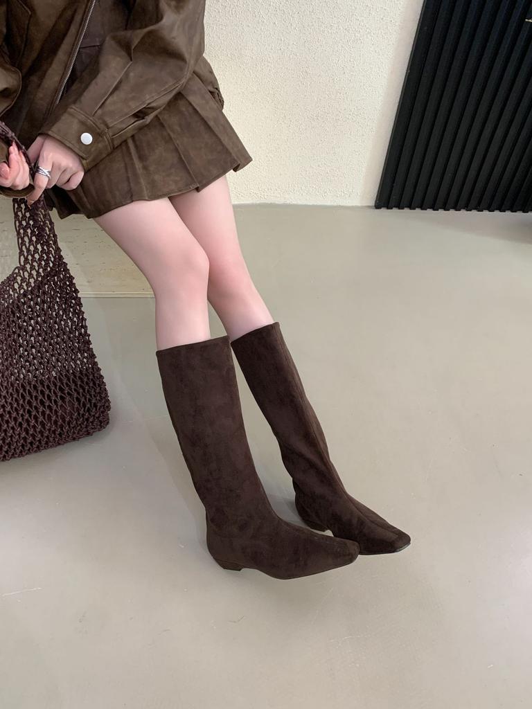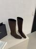 Invändig höjdökning khakifärgade byxor tubstövlar långa stövlar damskor 2025 nya höst- och vinter spetsiga tunna långskaftade ridstövlar