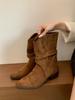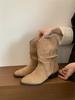Western style sleeve cowboy boots women's 2025 new medium tube v-mouth matte short boots thick heel British style retro boots