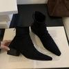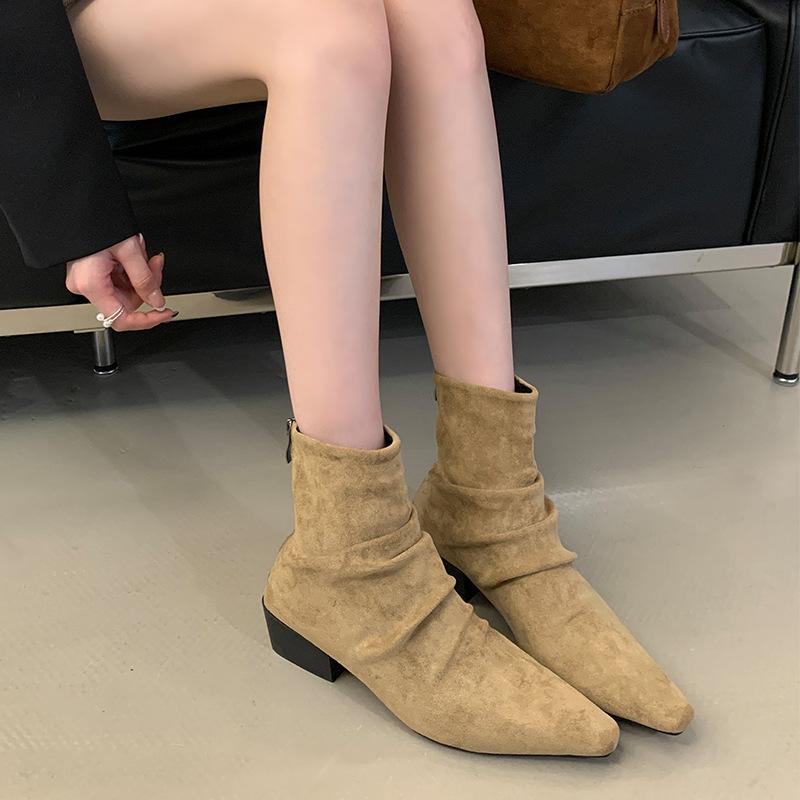 2025 nya matta mocka korta skaft franska veckade stapelstövlar dragkedja bak tjock klack mode retro western korta stövlar