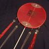 Ancient Style Red Long Handle Chinese Wedding Round Fan - Handmade Bridal Gift