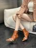 2025 autumn and winter new pointed crystal chain elastic high-heeled short boots fashionable versatile stiletto Martin boots