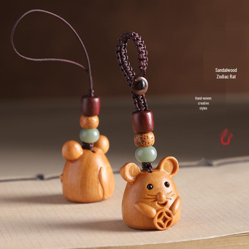 Sandalwood Zodiac Keychain Charm for Men & Women - Cute Mouse Pendant for Keys & Phones