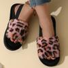Nya plyfflor med leopardtryck, damtofflor i elastisk bomull, varma fluffiga hemtofflor för kvinnor