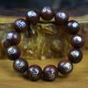 Natural Jujube Wood & Sterling Silver Mantra Bracelet with Jade Inlay - Buddhist Prayer Beads Pendant