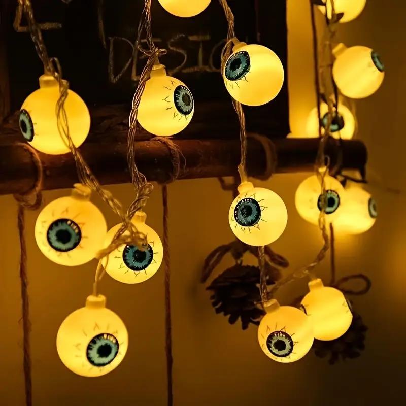 1PC 3M/9.84FT. 20LED Spooky Halloween Eyeball String Light Battery Powered Suitable For Home Yard Outdoor Festival Party Decor
