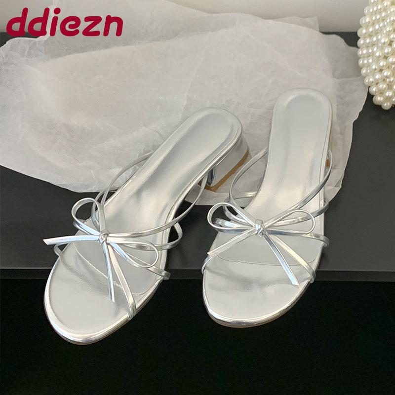 Mode Sommar Vår Kvinnliga Tofflor Damer Låg Klack Tofflor Skor Mode Fjärilsknut Kvinnor Klacktofflor Sandaler Skor