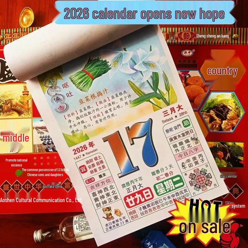 2026 Hand-Torn Colorful Wall-Mounted Imperial Health Calendar - Large Daily Almanac