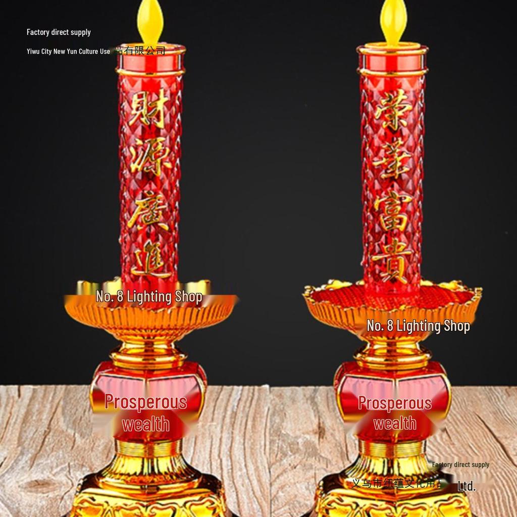 Fladdrande Låga Elektrisk Ljuspar: Stickkontakt Ljusstake för Hemmet, Altaret eller Rikedomens Gud Lampa