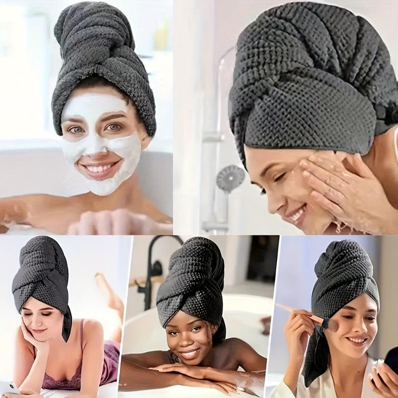 2pcs/set Extra-large Elastic Band Ultra-fine Fiber Dry Hair Towel High Water Absorption Soft and Frizz Control Headscarf