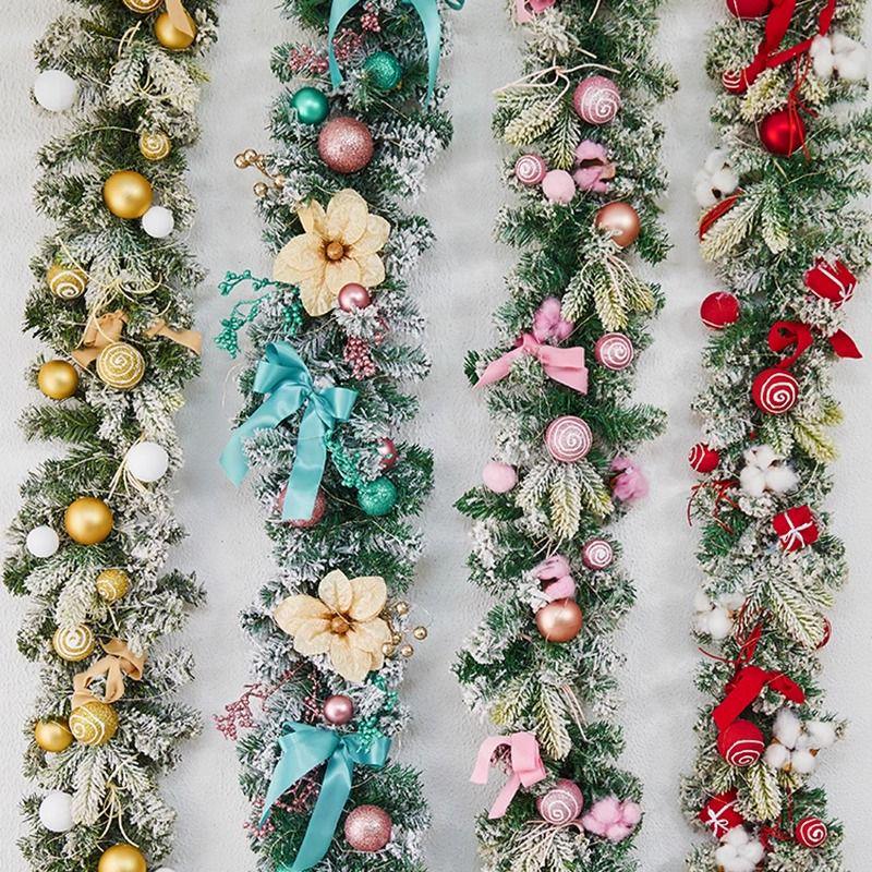 Encrypted Snowing PE Rattan Garland with Flocked Snow for Window & Wall Hanging