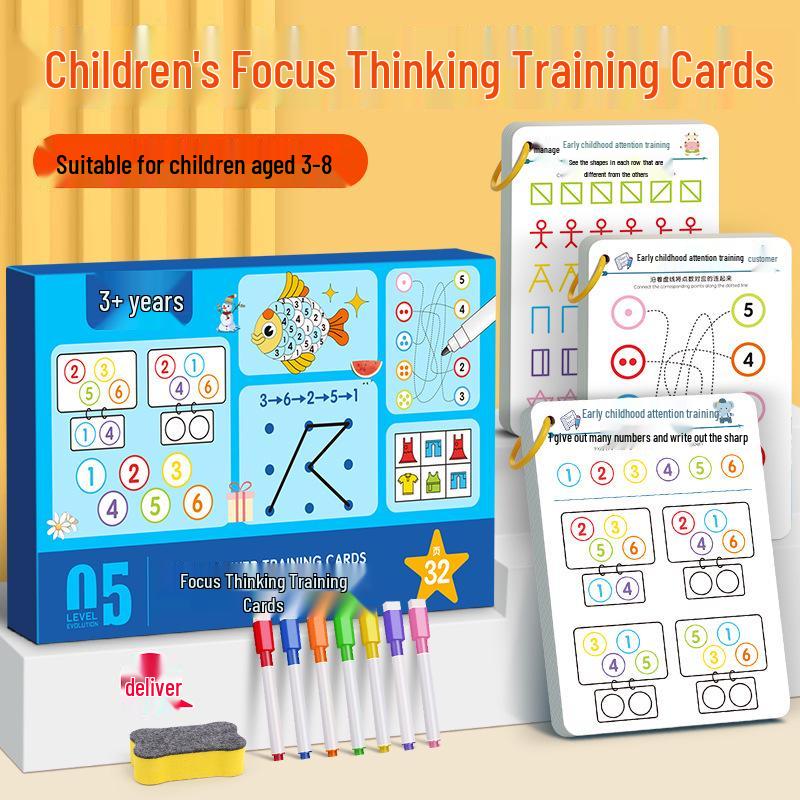 This innovative toy combines fun and learning to help children enhance their focus and logical thinking skills. Designed specifically for young minds, it features erasable pens and engaging activities printed on high-quality paper, allowing kids to solve problems, draw, and practice repeatedly without the worry of permanent marks. Perfect for encouraging creativity while developing cognitive abilities, this educational tool offers endless opportunities for hands-on learning and imaginative play. Ideal for use at home or in the classroom, this product supports early development in a lively and interactive way.