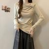 Slant neck long-sleeved T-shirt women's autumn and winter fleece polished bottoming shirt with slim-fitting pleated top