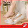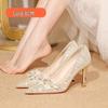Vi presenterar den perfekta blandningen av elegans och komfort, dessa spetsiga skor är idealiska för både brudar och tärnor.. Designade med ett lyxigt övermaterial i mocka, de utstrålar sofistikation och stil.. Högklackarna är prydda med fantastiska franska kristaller, vilket ger en touch av gnister som vackert kompletterar alla bröllopskläder.. Med en gummisula för hållbarhet och stabilitet är dessa skor designade för långvarigt slitage.. Foderfodret säkerställer en bekväm passform, medan innersulan i mikrofiber ger utmärkt dämpning, vilket gör dem lämpliga för heldagsevenemang och dagligt bruk.. Lyft fram din bröllopsoutfit och njut av elegansen och hållningen hos dessa utsökta klackskor.
