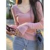 Pink collar pure want to wear knitted sweater women's autumn large size slightly fat mm thin bottoming shirt