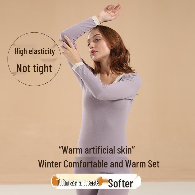Stay cozy and comfortable during the chillier months with this women's warm base layer set. Crafted entirely from soft, breathable pure cotton, this set is designed to keep you warm without sacrificing comfort. The long sleeves and V-neck design provide a flattering fit, while the solid pattern ensures versatility for layering with any outfit. Perfect for autumn and winter, this base layer set is an essential addition to your cold-weather wardrobe.