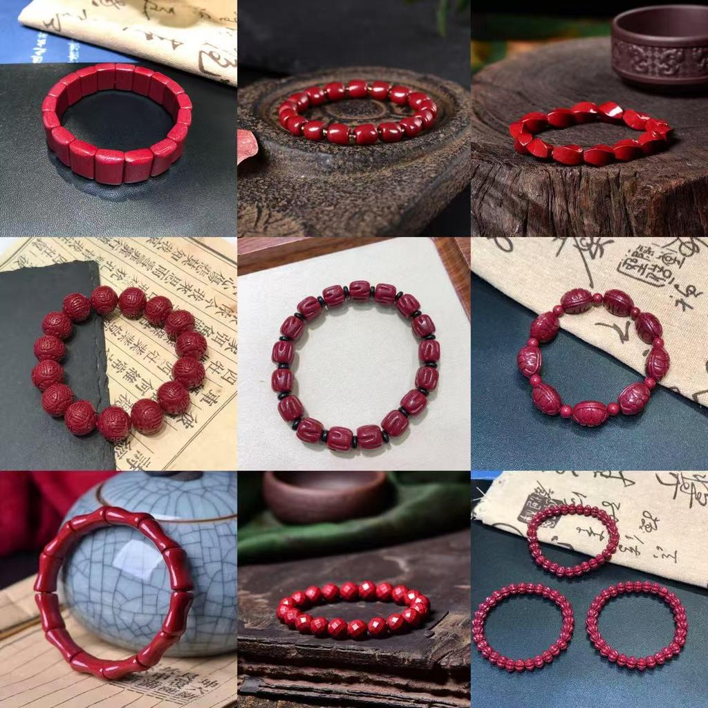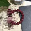 Cinnabar Fortune Gourd Bead Bracelet - Faceted Old Style Wealth Charm for Benmingnian