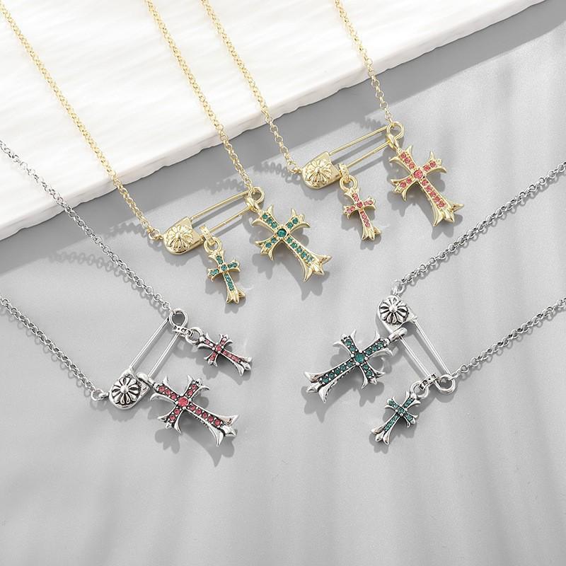 Kroxin Guld & Silver Vintage Kors Hänghalsband med Diamantbrosch - Hip Hop Trendig Par Kedja