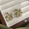 Vintage Olive Green Zircon Flower Stud Earrings - Retro Court Style with Heavy Industry Elegance for Women