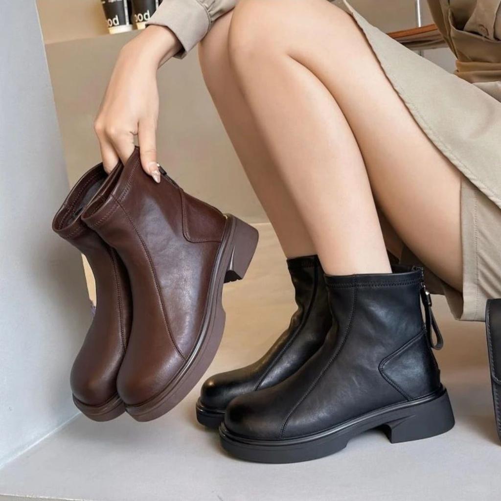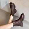 Leather short boots thick-soled round-headed retro Martin boots women's 2025 autumn and winter velvet new British foreign fashion women's boots