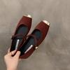Flat French Black Mary Jane Single Shoes Fairy Shoes Red Evening Gentle Shoes Large Size Women's Shoes 41-43