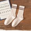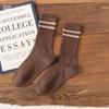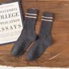 Men's Spring and Autumn Vintage Pure Cotton College-style Long Socks, Versatile Double-bar Mid-calf Socks for Autumn and Winter