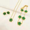 Smyckesset med lyckoklöver - 18K guldpläterad blomdesign Armband med fem blad, Halsbandshänge, Örhängen för kvinnor Lyckobringande gåvor