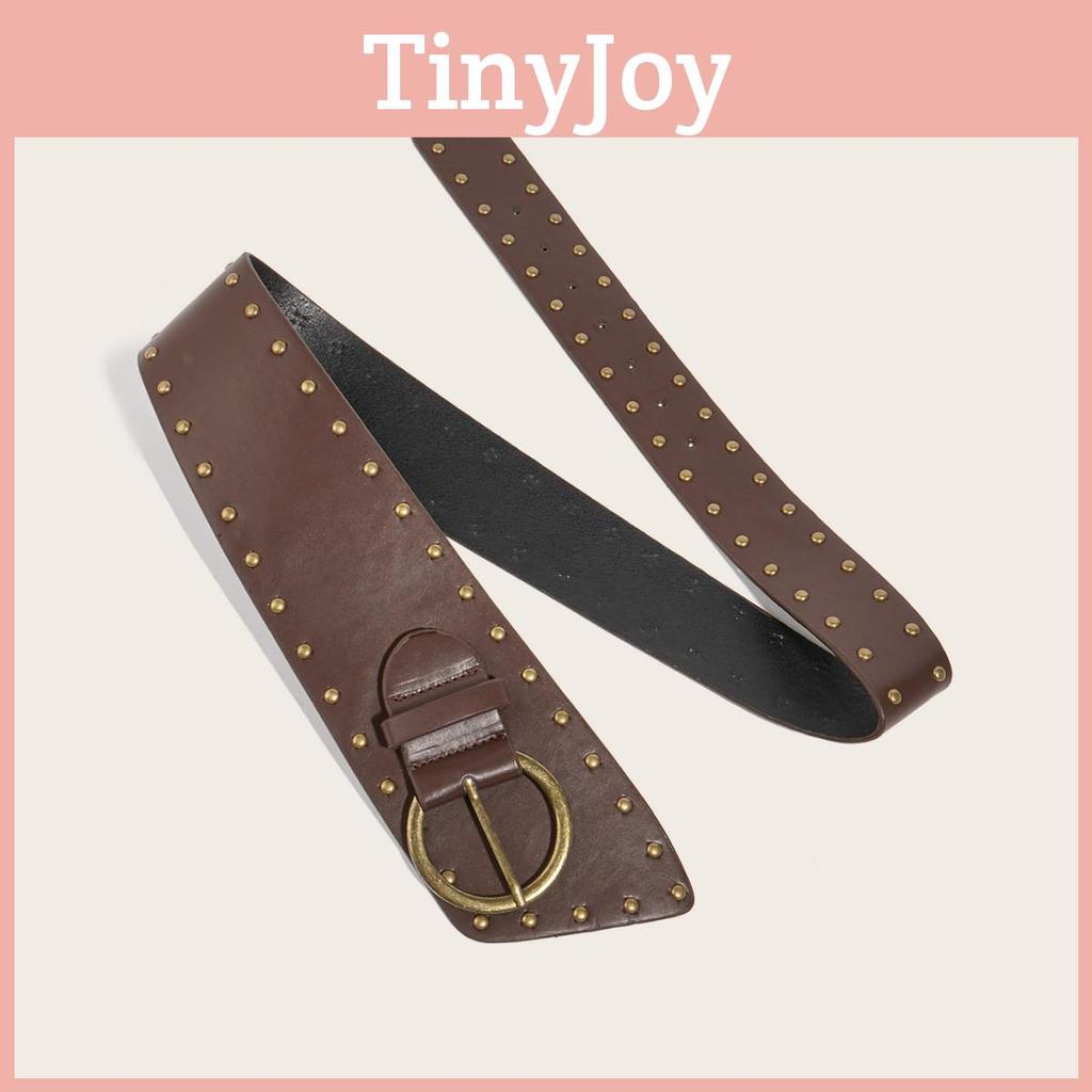 This fashion-forward belt features a durable faux leather construction with a width of 4.5-9 centimeters and measures 105 cm in length. The buckle, made of alloy with a pin closure, supports easy adjustment and secure fastening. It showcases bold metal nail embellishments for a distinctive punk-inspired look.
