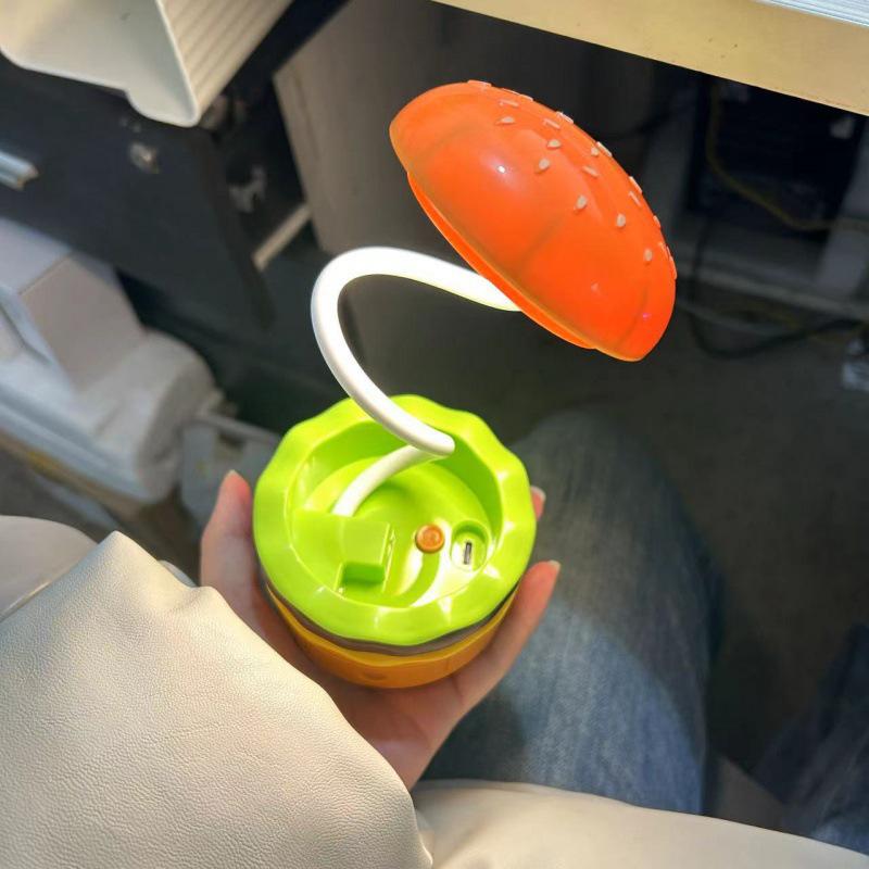 Hamburger Night Light with Pencil Sharpener: Rechargeable Mini Desk Lamp for Children