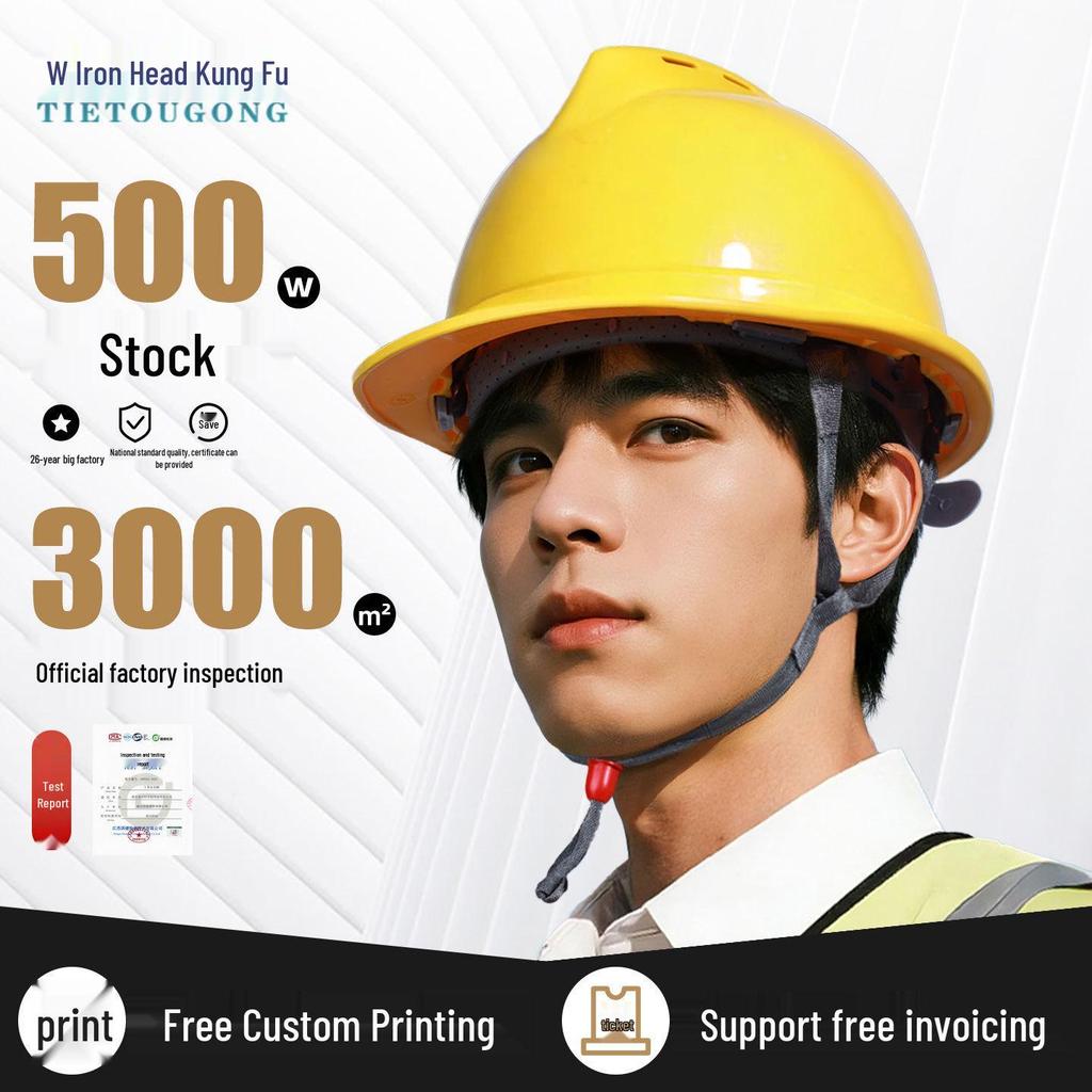 Skyddshjälm V-typ med järnhuvud, andningsbar, stötdämpande, för byggarbetsplatser