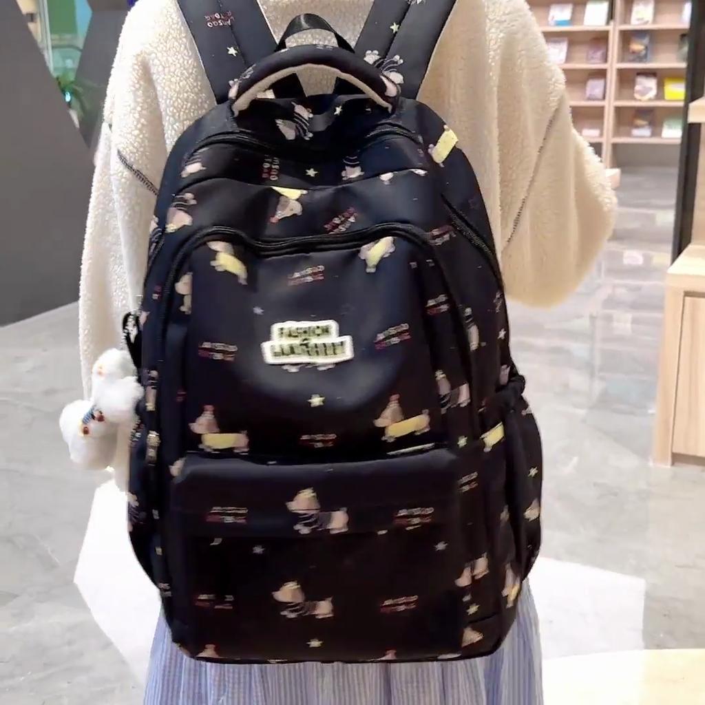 Tecknat tryck Student Skolväska Damryggsäck Stor Kapacitet Ryggsäck