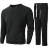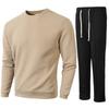 Höst och Vinter Ny Rund Hals Långärmad Rutig Casual Underdel Skjorta Herrbyxor Set