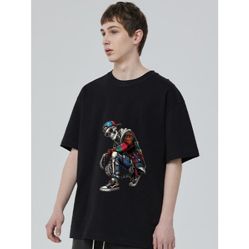 Herr Svart T-shirt med Skelett Hip Hop Dans Grafiskt Tryck Streetwear Casual Wear