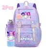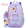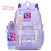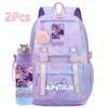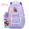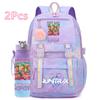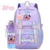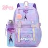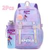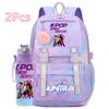 2 st/set Söt Anime Kpop Tryckt Ryggsäck 750 ml Vattenflaska Stor Kapacitet Resväska för Tonårsflicka Pojke Bokväska Barnpresent Rucksak