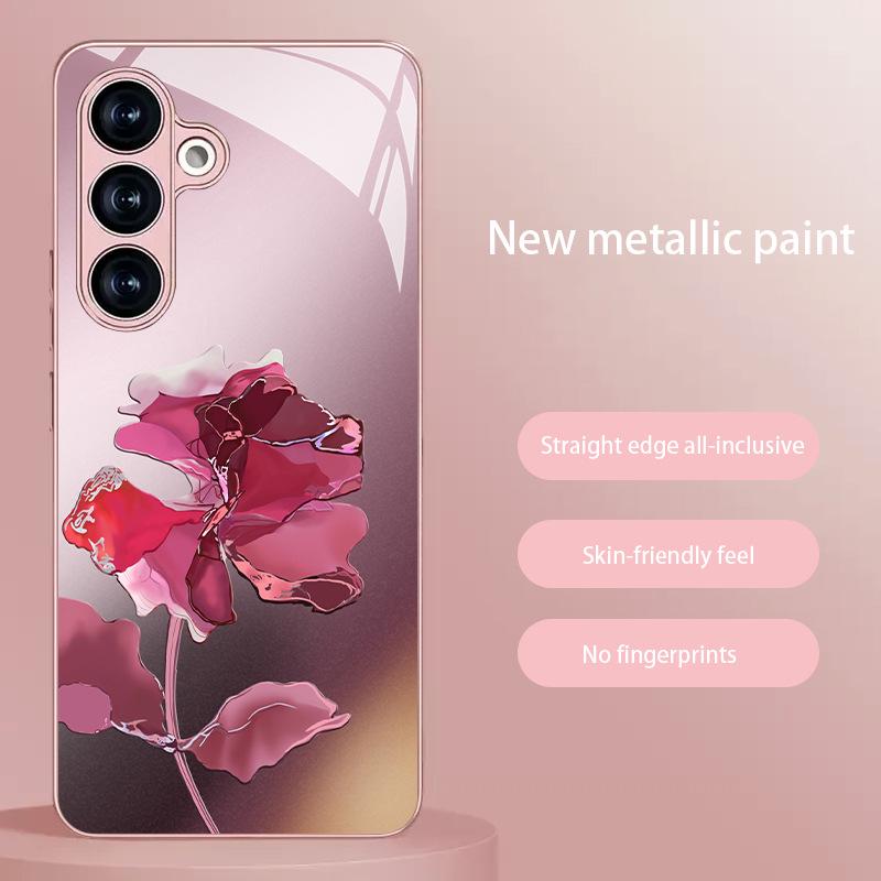 Marmorros Glas Telefonskal för Samsung S21/S22+/S24 Ultra/S25 FE