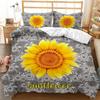 Solros Påslakanset Gul Blomma Sängkläder Set Solros Botanisk Blommig Trädgård Blomtryck på Svart Polyester Quiltöverdrag
