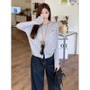Autumn and winter loose twist bow embroidered knitted long-sleeved cardigan women's design sense lazy crew neck jacket top tide