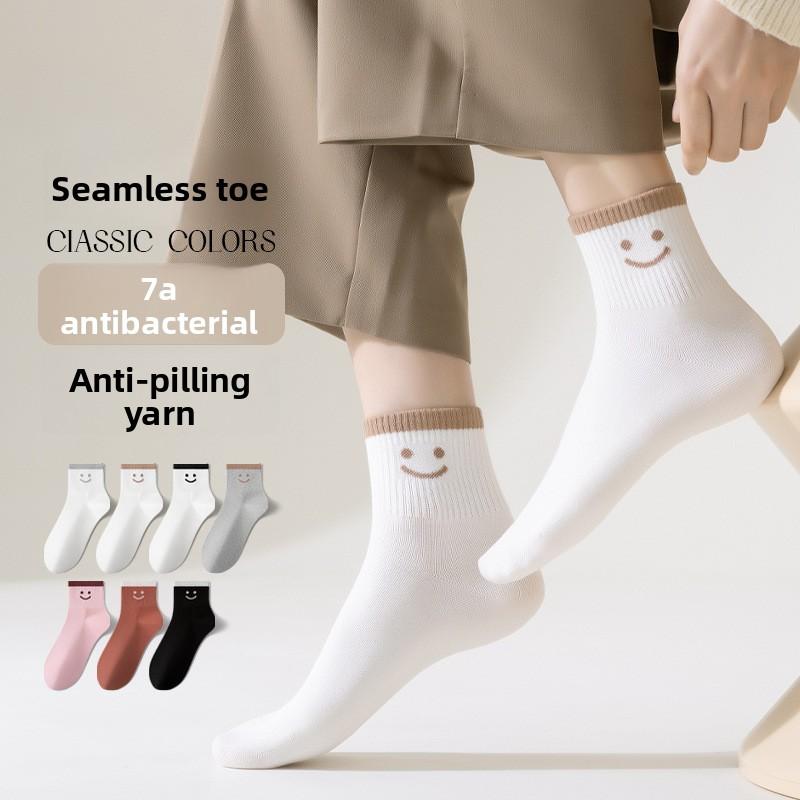 Damer Vår och Sommar Tunna Leende Ansikte Antibakteriella Deodorerande College Stil Studenter Korta Strumpor