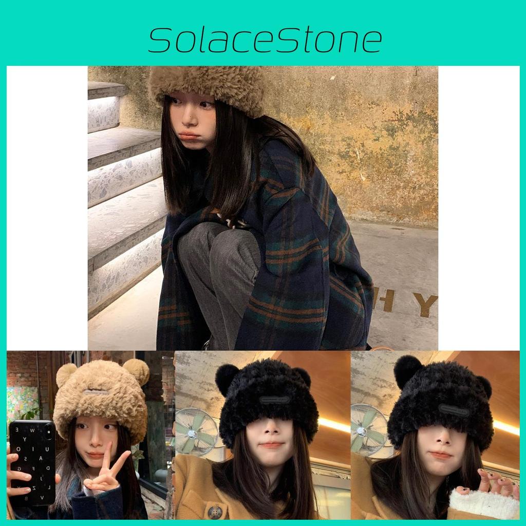 Bear Elegant Plush Knit Hat For Women Winter Warm Thick Fur Cap Beanie