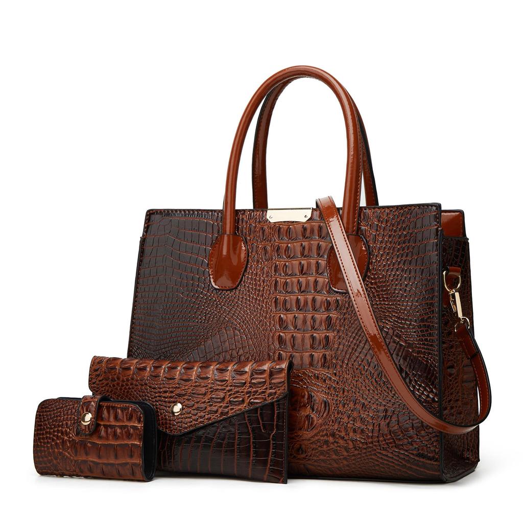2025 Stor Kapacitet Krokodilmönster Axel- & Crossbody Tote Bag: Europeisk-amerikansk tredelad uppsättning