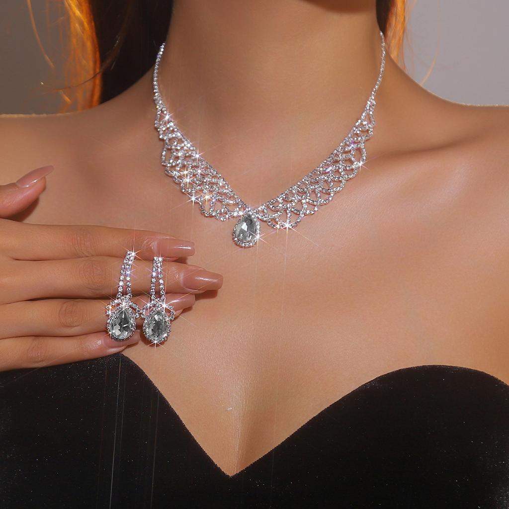Snygg Geometrisk Ihålig Glänsande Strass Halsband Örhängen Tvådelat Set