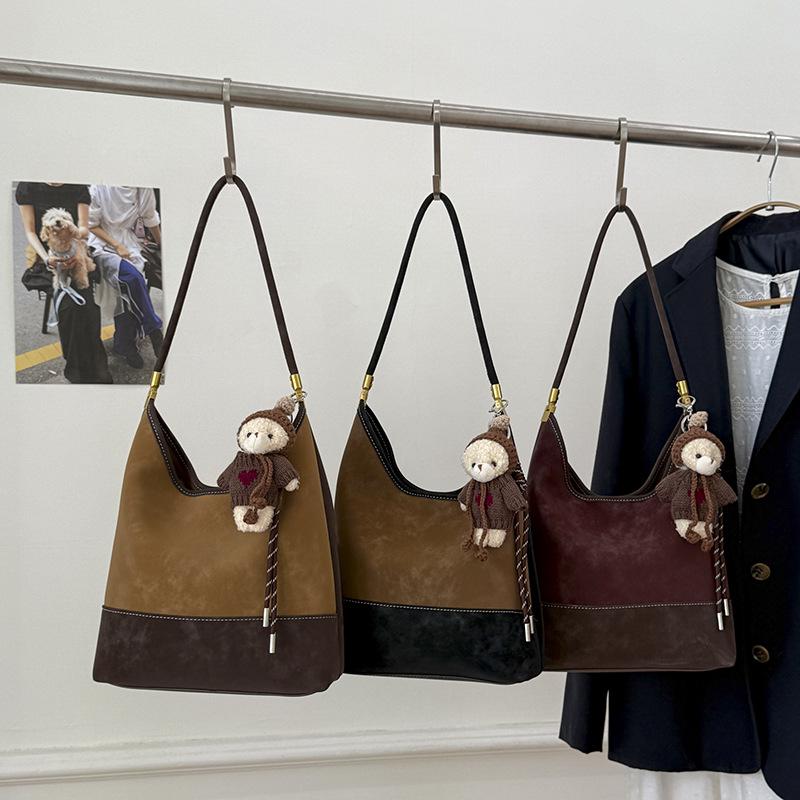 Dam Retro Frostad Mocka Hinkväska - Koreansk Stil Färgblock, Enkel Pendling, 2025 High-End Enkel Axelväska.
