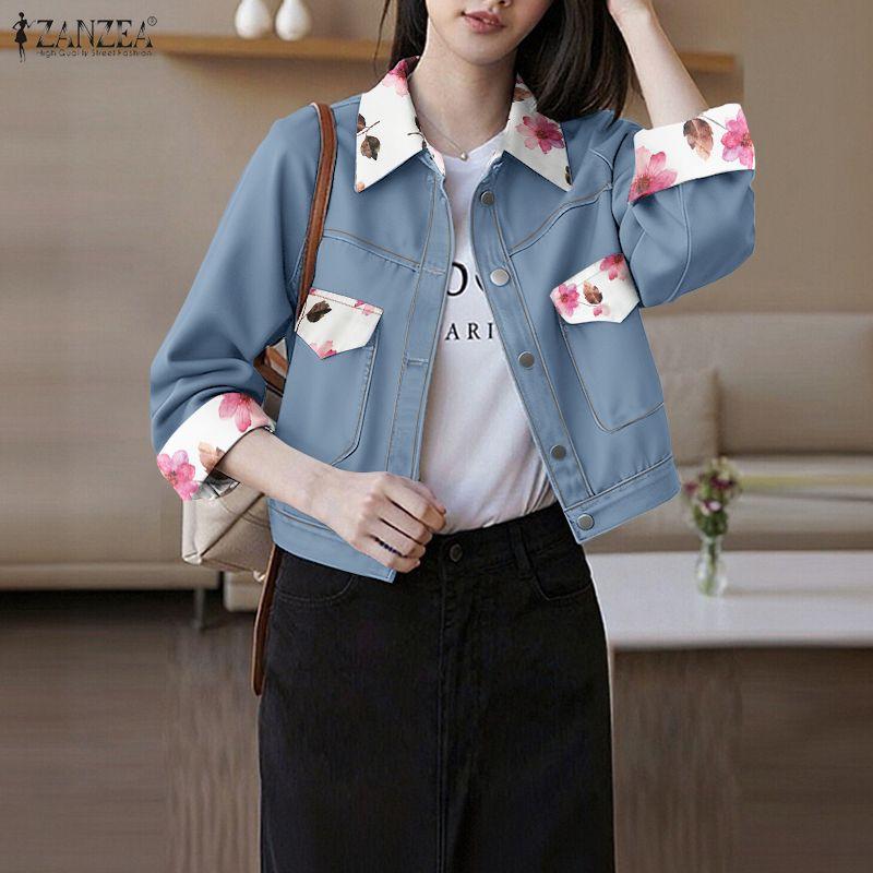 ZANZEA Women Floral Splice Turn Down Collar Long Sleeve Casual Blouse