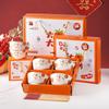 Wulu rikedomens gud skål och ätpinnar set, keramiska presenter, 4 skålar och 4 ätpinnar set, grossistgåvor till butiken, och gratis matservis set