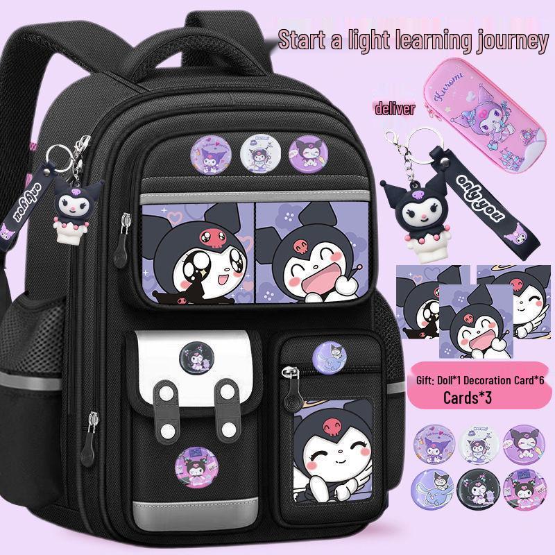 Kuromi 3D Lättviktsryggsäck med stor kapacitet för flickor (Årskurs 1-6) med ryggskydd