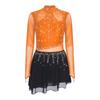 Dam Skridskoklänning Långärmad Strass Bodysuit Chiffonkjol Lyriskt Dansdräkt