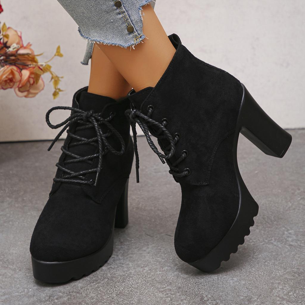 Lace-up High-heeled Boots Plus Size Thick Heels 2025 Winter New Fashion Boots for Women