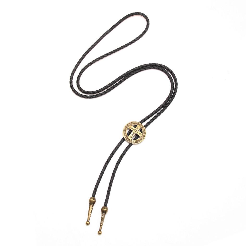 Bolo Tie för Män Western Cowboy Stil Slips med Ihålig Kors Spänne Dekorationer Kostymtillbehör