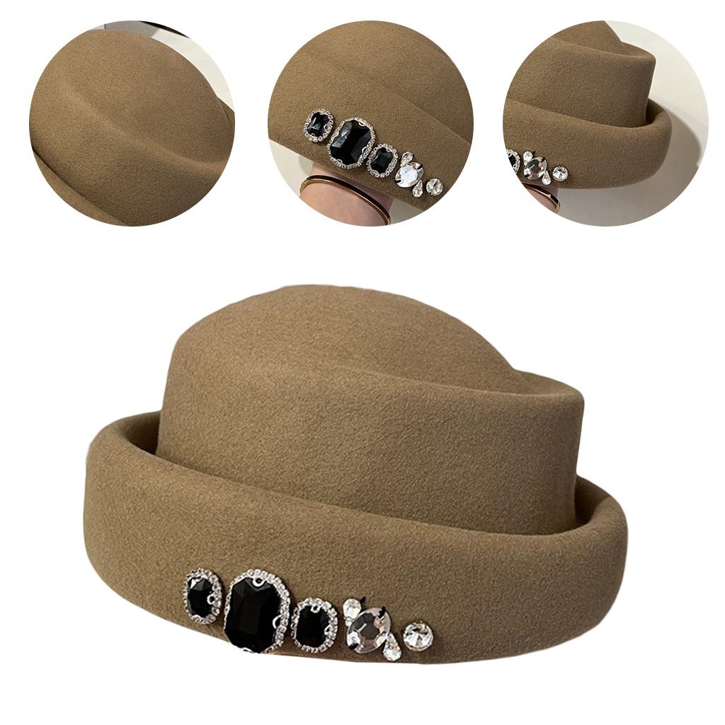 Vintage Woolen Felt Top Hat for Women Girls Painter Cap Windproof Chauffeur Hat Adult Cold Weather Beanie Cap Headdress